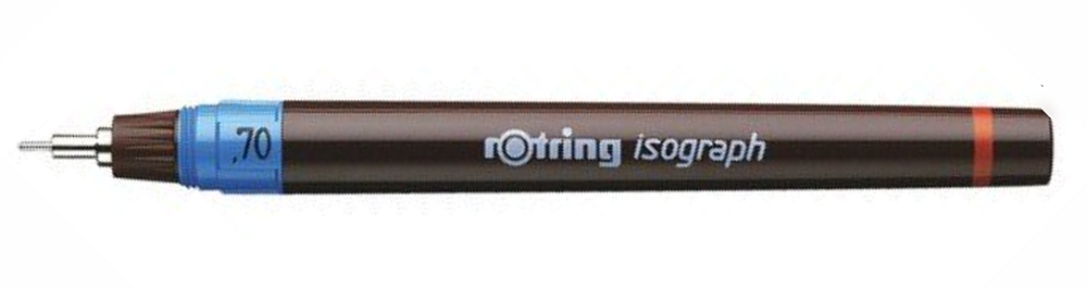Die Zeichenschablone wurde ursprünglich für einen Tuschfüller (Tinten-Isograph Stift) 0.7 mm entwickelt.Diese Stiftart ergibt nach wie vor die präzisesten Zeichnungen.